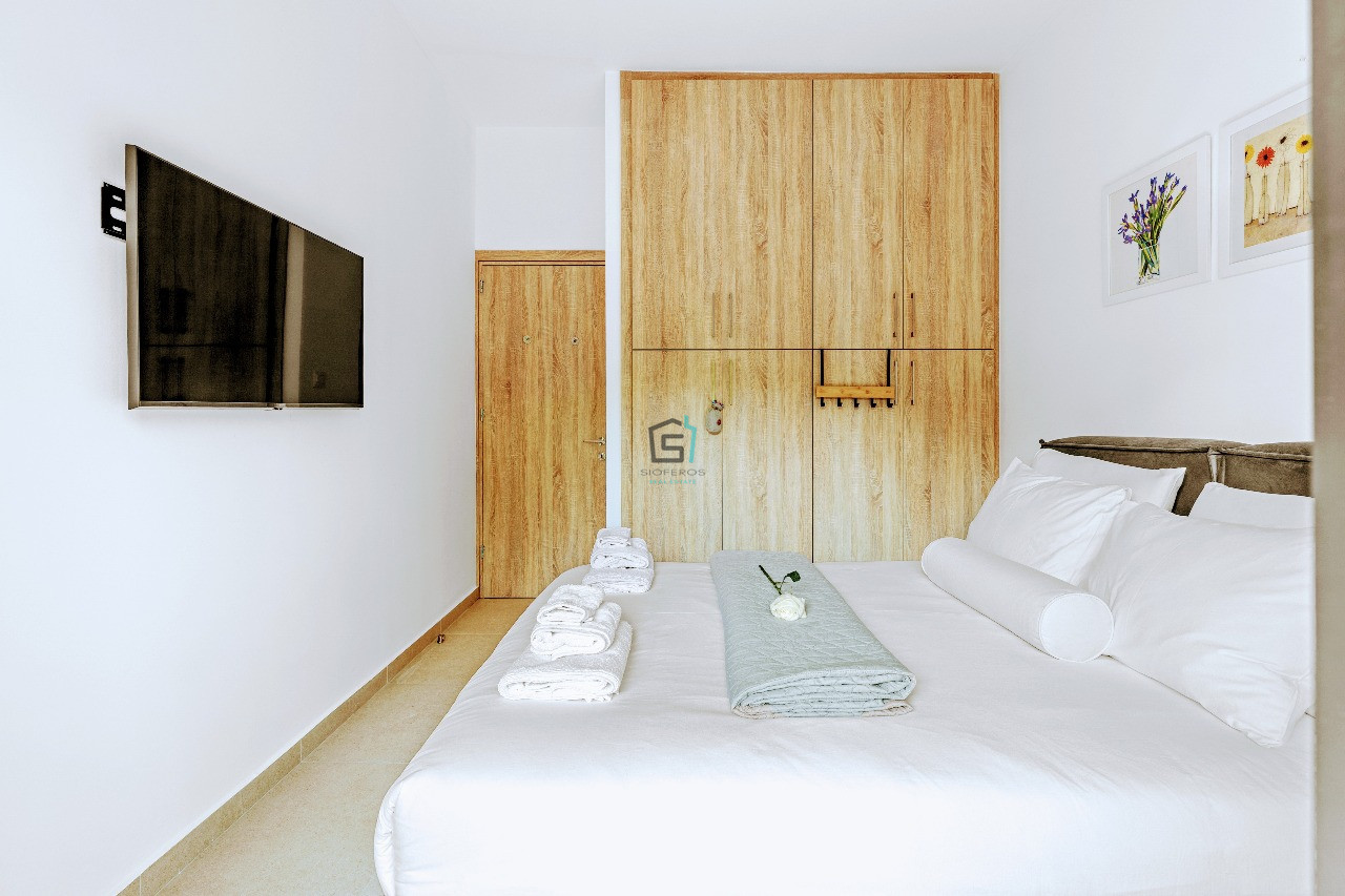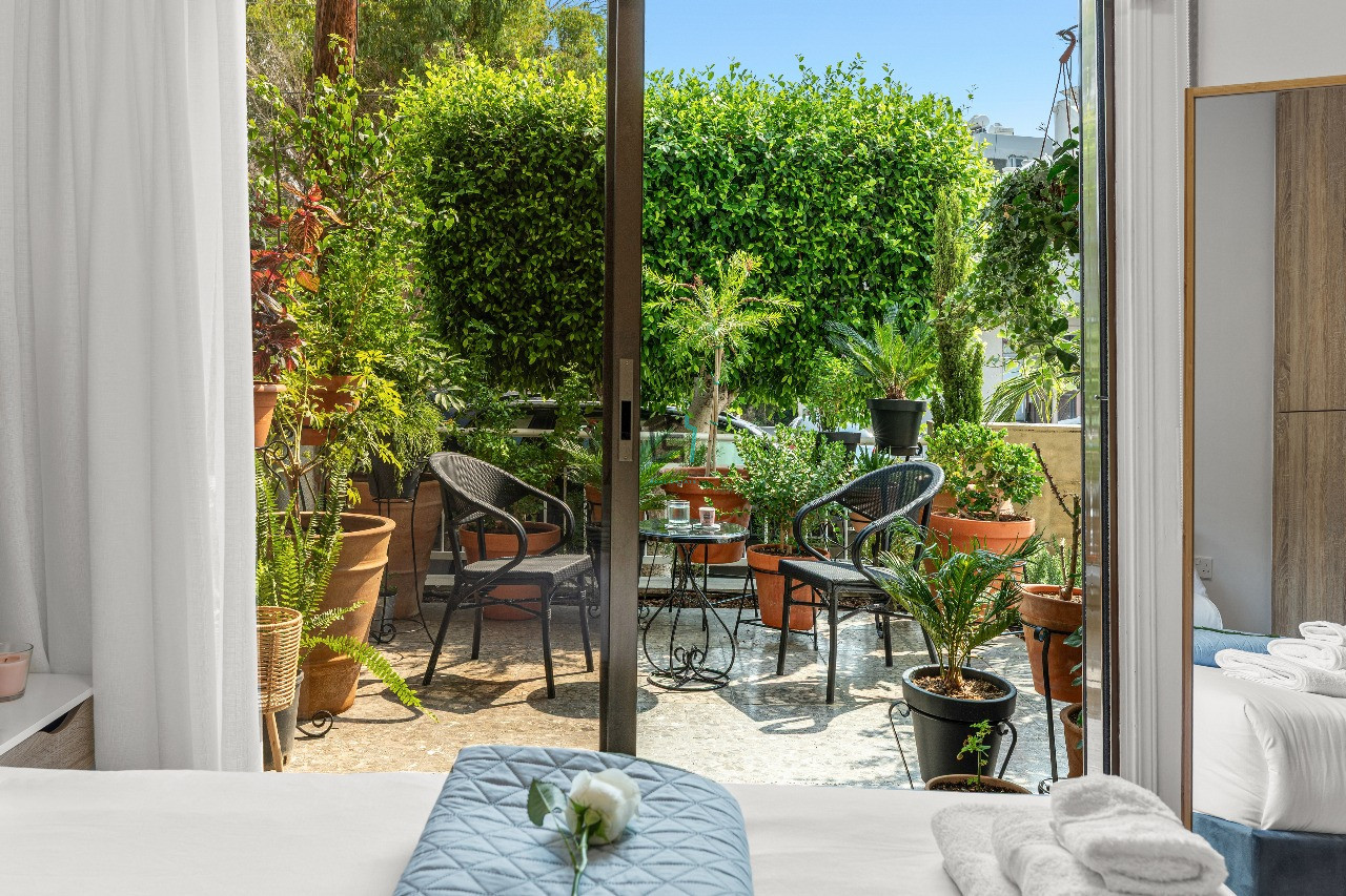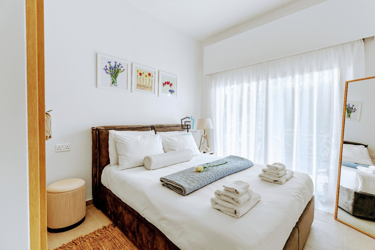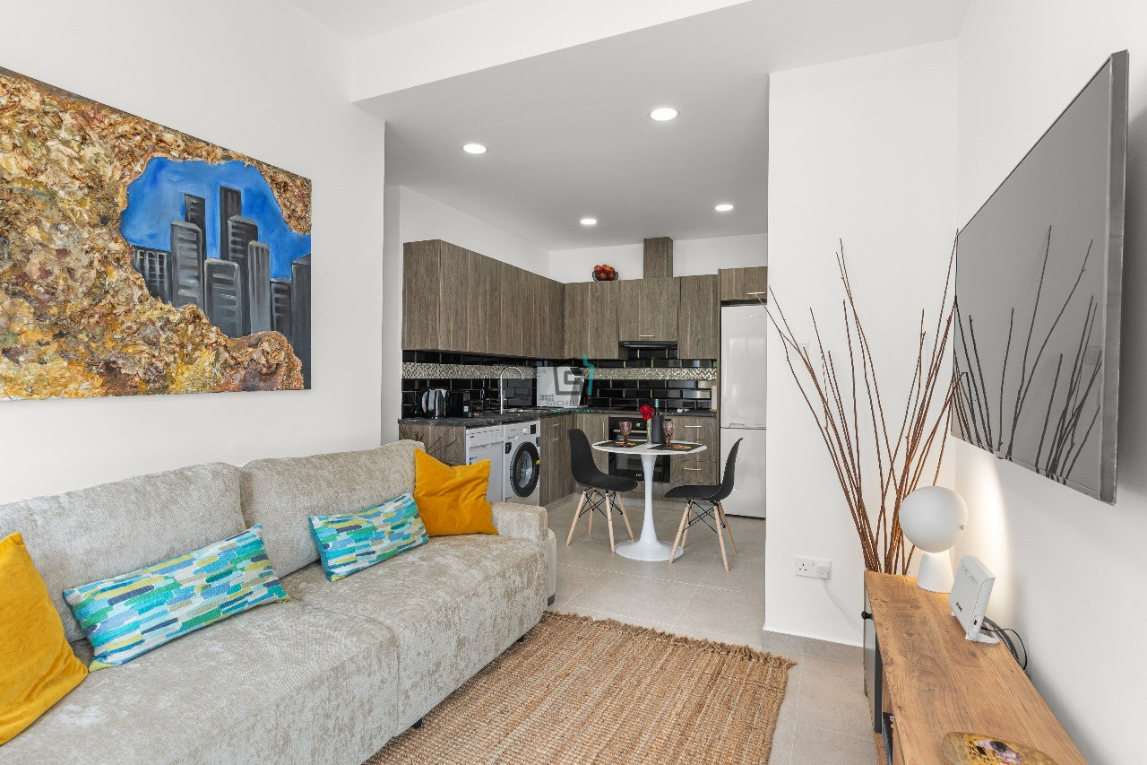 This delightful 1-bedroom ground floor apartment in the sought-after Petrou kai Pavlou area, offers creative living space with a vibrant, welcoming feel. Fully furnished and thoughtfully decorated in cheerful colours, the apartment features 45sqm of comfort, including a bright, open-plan kitchen and living area, fully equipped with all electric appliances, a coffee machine, TV, and air conditioning. The standout feature is the wonderful 30 sqm private veranda.