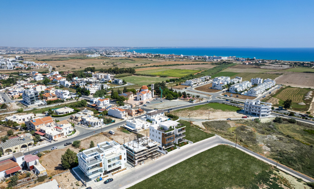 Modern 2 bedroom apartment sits on the second floor of a new apartment block, part of a modern residential cul-de-sac development, located in an excellent area of the coastal town of Livadia. It is close to the sea, with easy access to Larnaca center, in a quiet area that offers all amenities while at the same time giving the neighborhood feeling to its residents.