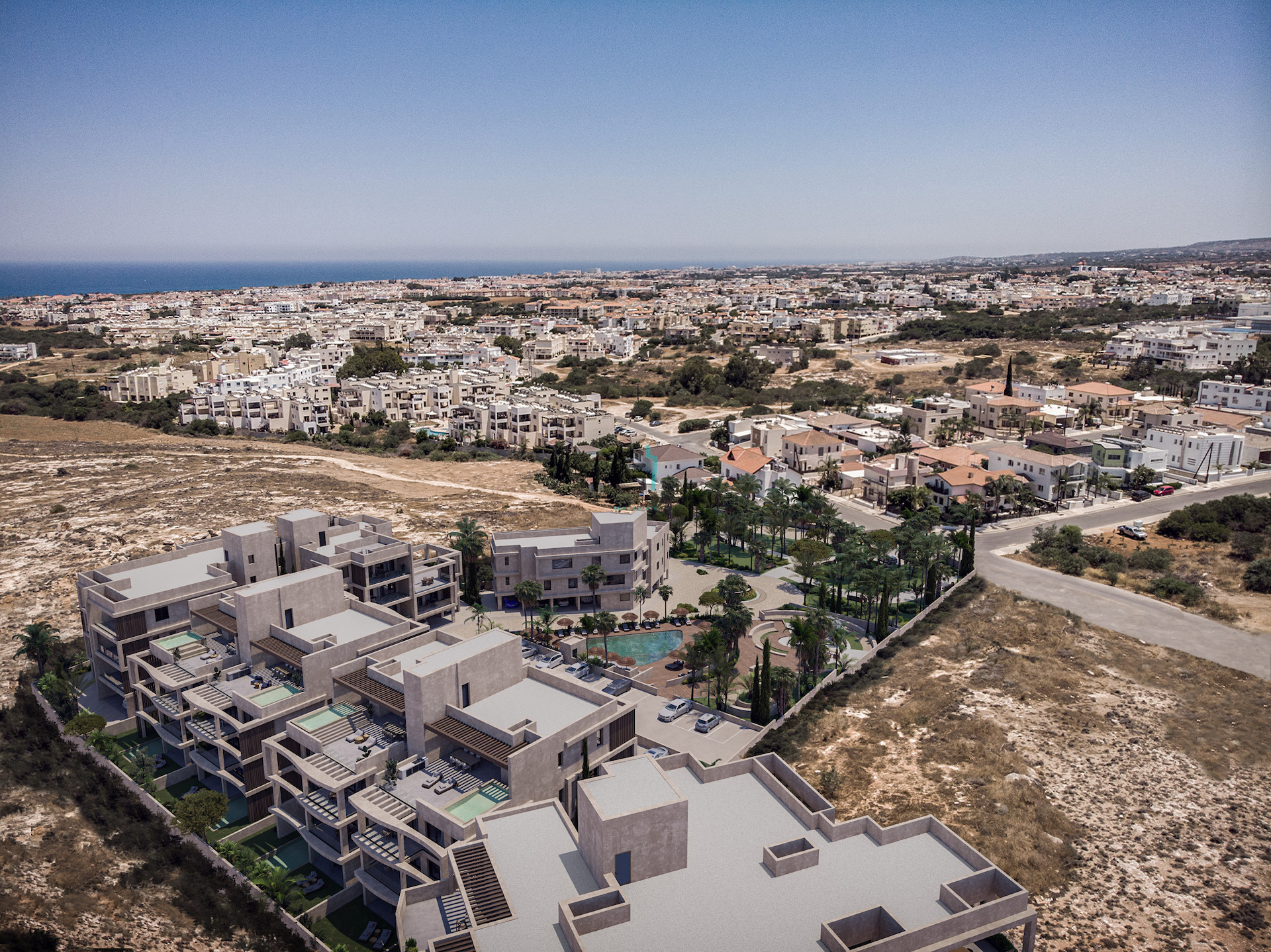 The apartments are located in Protaras, just a short distance from Paralimni and to Kapparis. Sitting on an elevated spot, the project offers breath-taking, unobstructed sea views. It includes six apartment blocks with a total of 64 units, each overlooking either the sea or the communal swimming pool.