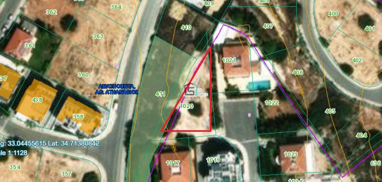 An attractive residential plot with a total area of 1,046 sqm is located in Agios Athanasios, Limassol. This triangle shaped plot falls under planning zone Ka6 with a building density of 90%.