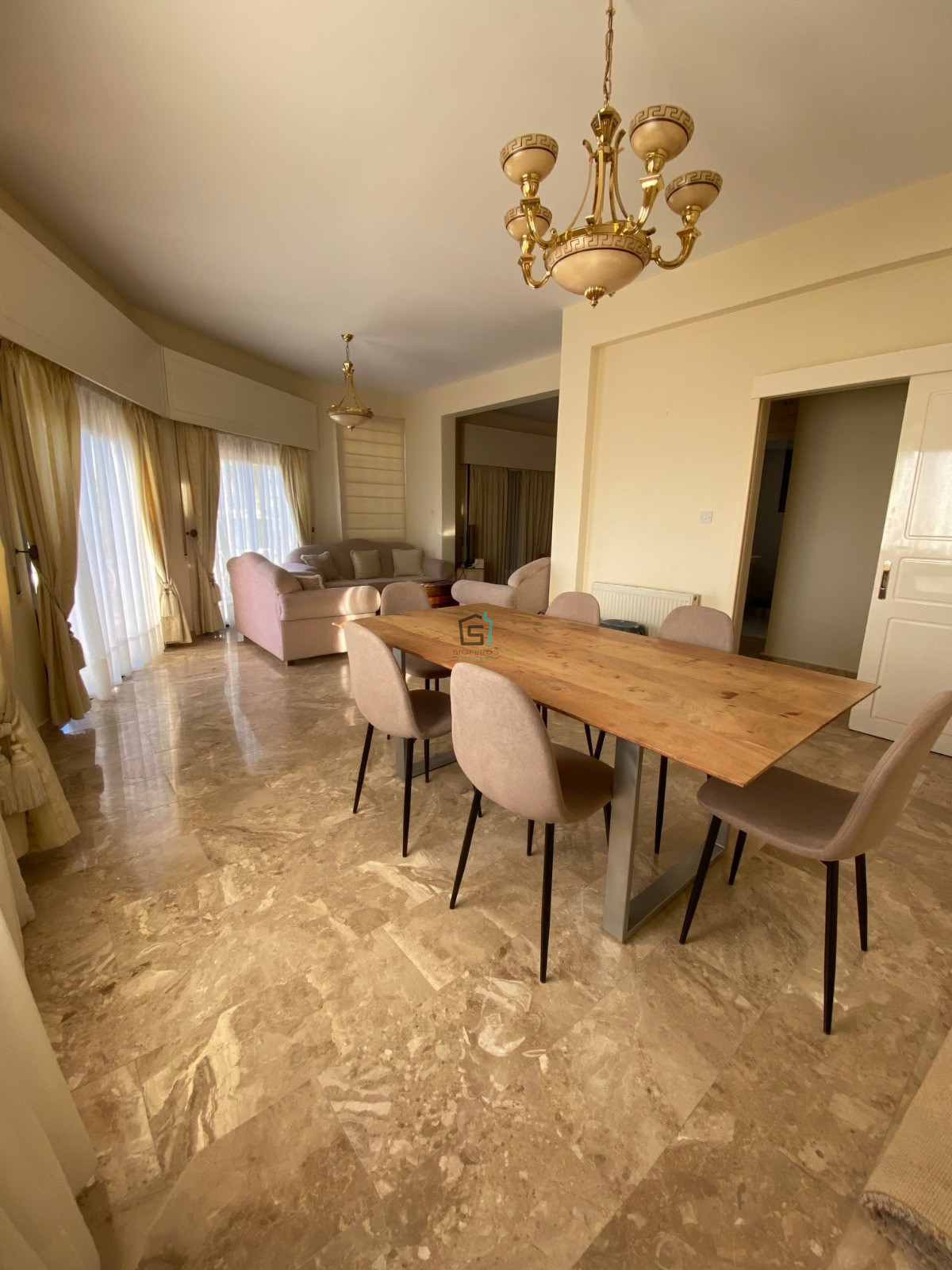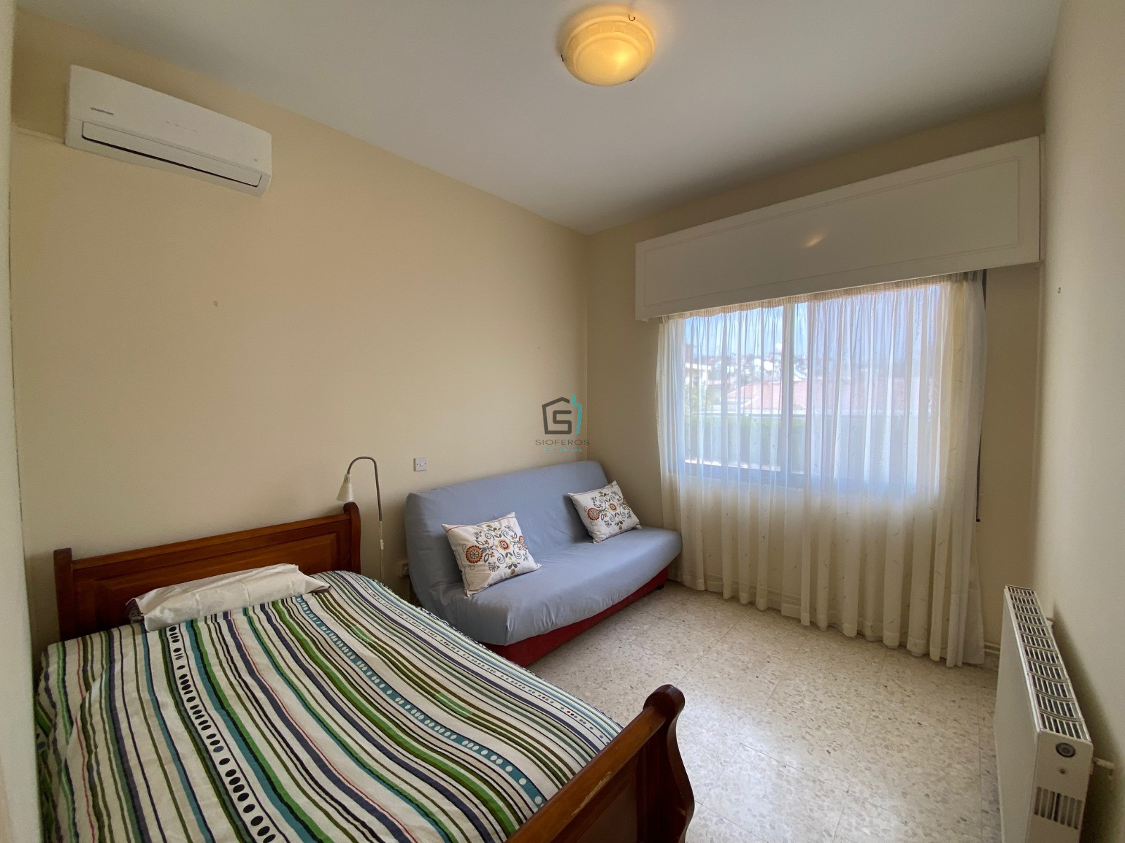 Situated in the sought-after Agia Fyla with easy access to all local amenities, this fully furnished three-bedroom upper house boasts stunning panoramic views of the city and the sea.