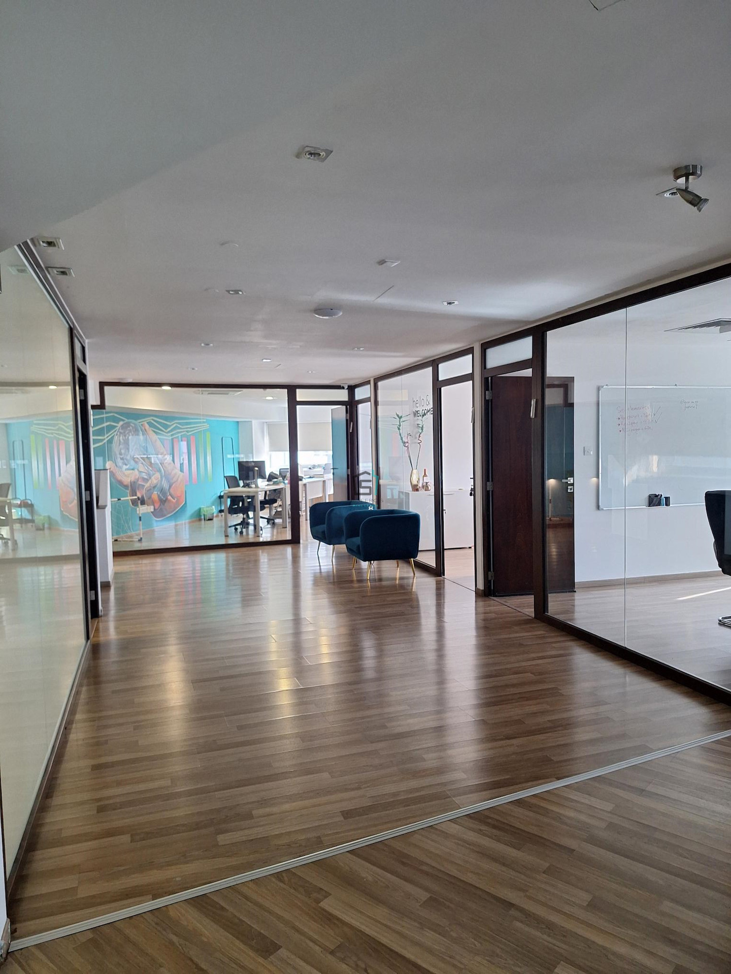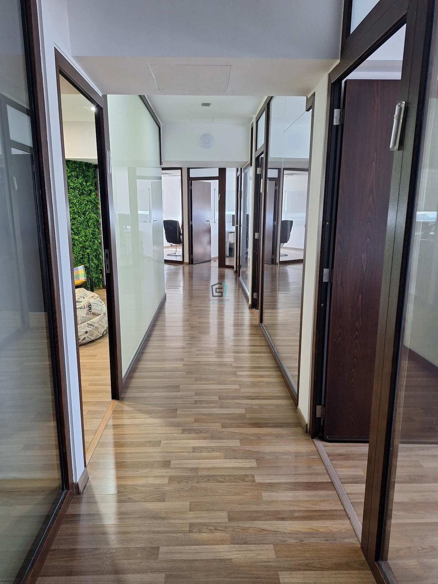 A bright and spacious office located on the 9th floor in the heart of the city centre, providing easy access to public transport, services, and a wide range of amenities. This fully renovated and furnished workspace features a generous layout with 9 private offices, a reception area, kitchen, two WCs, a storage room, a server room, and 4 dedicated parking spaces.
