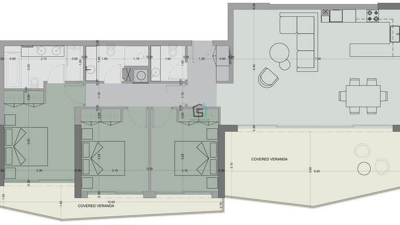 - Covered veranda: 35 sqm