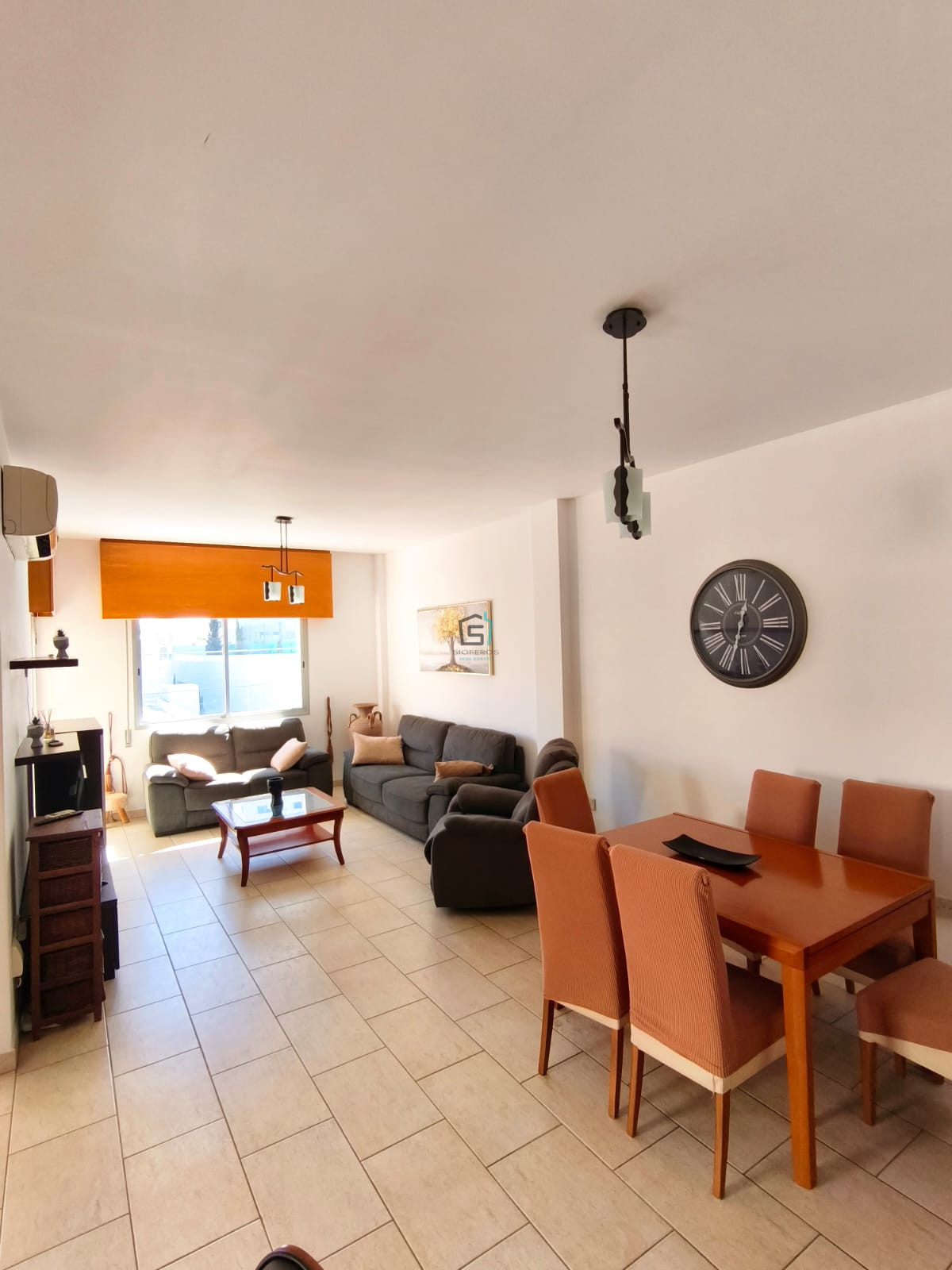The apartment is fully furnished and features a generous open-plan living and dining area, a well-equipped kitchen, two comfortable bedrooms, a family bathroom, and a designated parking space.