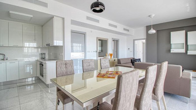 This bright fourth floor home sits in an attractive, contemporary small apartment building with stunning sea, mountain and park views. This beautiful spacious home spans over one floor and it consists of an open plan living/dining room, Italian kitchen, 3 bathrooms, guest cloakroom, VRV air conditioning, underfloor heating and electric heating, provision for alarm, security door, fully furnished and equipped, large terraces, covered parking, storage and has separate title deeds.