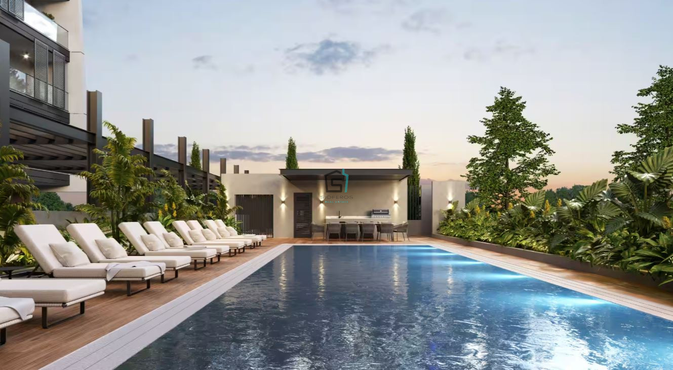 Residents will benefit from premium amenities, including a beautifully designed outdoor swimming POOL, landscaped green areas, and a dedicated BBQ space perfect for social gatherings. The apartment also includes covered parking and a private storage room, ensuring practicality alongside comfort.
