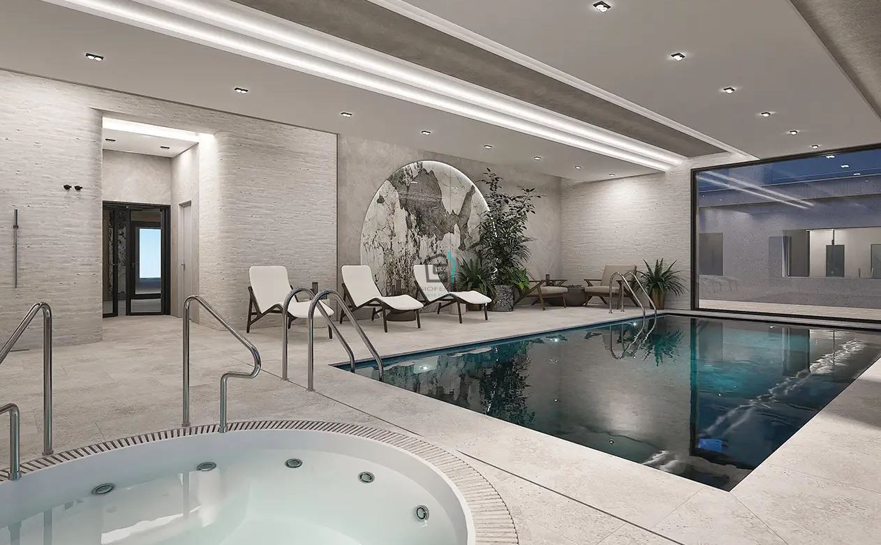 Residents enjoy access to a wealth of premium amenities that elevate everyday living into a resort-style experience. From the stunning 40-meter infinity pool and indoor heated pool to a fully equipped spa with hammam, sauna, jacuzzi, and massage rooms, every detail has been thoughtfully curated. Fitness and wellness are at the heart of the community, with a modern gym, yoga spaces, and even a dedicated hiking trail. Families are equally catered for, with children’s pools and play areas, including a mini climbing wall.