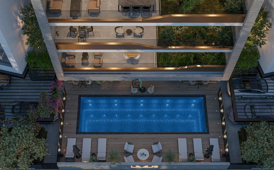 NEW two bedroom pool apartment boasting energy-efficient (A+) property combines contemporary design and features allocated parking and storage, underfloor heating, smart home technology, thermal insulation, and provisions for air conditioning and CCTV.
