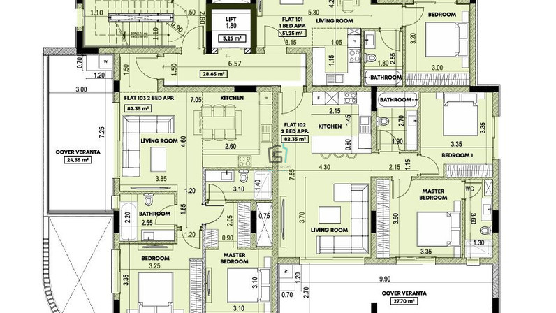 Situated in a contemporary mixed-use development, the building features retail shops with mezzanines on the ground floor, and stylish 1- and 2-bedroom apartments on the upper levels, complemented by exclusive roof gardens.