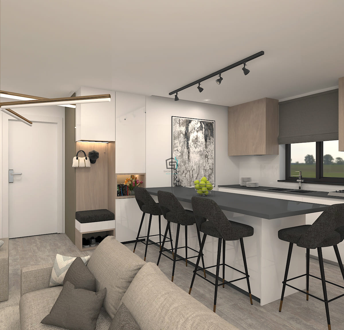 The apartment features a well-planned open layout, where the living, dining, and kitchen areas flow effortlessly together, maximizing space and natural light. Large openings extend the interior onto a spacious covered veranda and massive ROOF GARDEN perfect for enjoying stunning sea views.