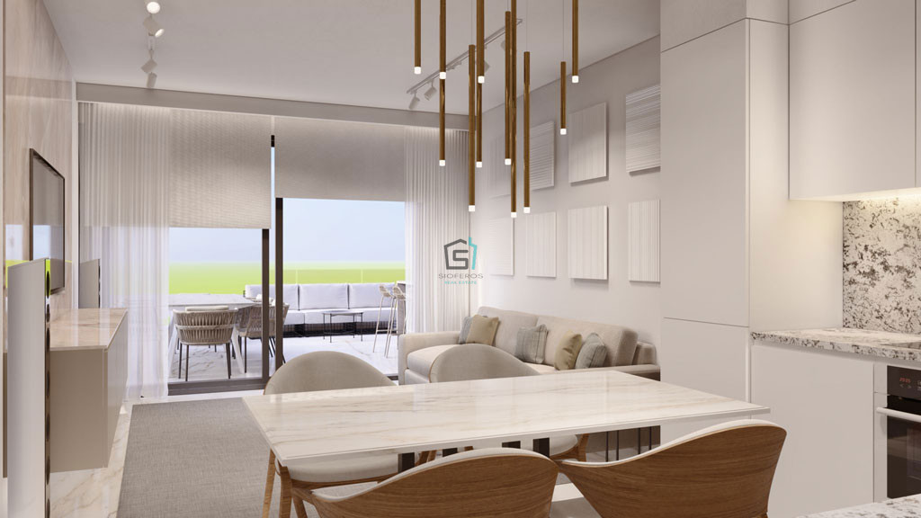 Inside, the apartment features three well-proportioned bedrooms, two elegant bathrooms, and a convenient guest WC. High-quality finishes and thoughtful design elements ensure a comfortable and stylish living environment, while provisions for underfloor heating and a smart home system add a touch of future-ready convenience.